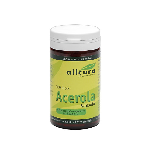 Nahrungsergänzungsmittel aus der vitamin-C-reichen Acerolakirsche in vegetarischer Kapselhülle.