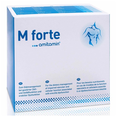 amitamin® M forte ist nicht als einzige Nahrungsquelle geeignet. Trocken und lichtgeschützt bei Raumtemperatur lagern. Außerhalb der Reichweite von kleinen Kindern aufbewahren. Nicht für Kinder und Jugendliche unter 18 Jahren. Unter ärztlicher Aufsicht verwenden. M forte enthält Arginin und Mikronährstoffe, die für die Funktionalität der Gefäßinnenwand (Endothel) und damit die männliche Erektion wichtig sind. Weitergehende Erläuterungen zur Zweckdienlichkeit in der Packungsbeilage.