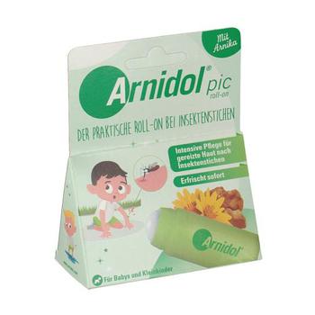 enthält Arnika und 6 weitere natürliche Inhaltsstoffe, wie z. B. wertvolle Bestandteile des Weihrauchstrauches, Calendula und Aloe. Dank der besonderen Kombination dieser Inhaltsstoffe sorgt Arnidol® pick roll-on für eine intensive Pflege der durch Insektenstiche gereizten Haut und lindert so den Juckreiz. Der praktische Roll-on erleichtert das Auftragen und ist ideal zu Mitnehmen.