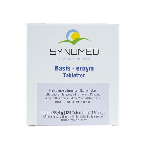 Nahrungsergänzungsmittel mit natürlichen, pflanzlichen Enzymen aus Aspergillus oryzae. Ananas -, Papaya- und Feigenfruchtpufver, dem Mineralstoff Zink sowie Traubenkern-Extrakt (OPC).
