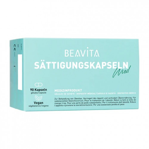 Die Sättigungskapseln von BEAVITA enthalten als Wirkstoff eine Kombination aus reinen, natürlichen viskosen Polysacchariden. Diese absorbieren innerhalb von 30 Minuten bis eine Stunde hundert Mal ihr Gewicht in Wasser. Es bildet sich eine Gel-Matrix, die für eine Sättigung sorgt. Dadurch fällt die Essensportion geringer aus. Weil sich die Gel-Matrix mit der Nahrung vermischt, wird die Verdauung ebenfalls verlangsamt, sodass ein normaler Blutzuckerspiegel gefördert wird.