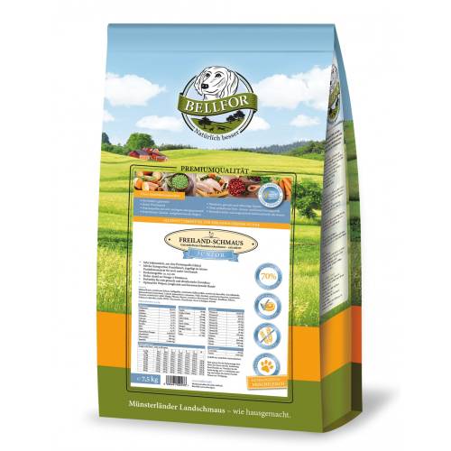 BELLFOR Junior-Freiland-Schmaus - Trockenfutter für Welpen & Junge Hunde mit Huhn getreidefrei 7.5 kg