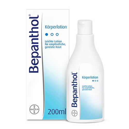 Die leichte Bepanthol® Körperlotion wurde speziell für die Pflege von empfindlicher und gereizter Haut entwickelt. Großzügig aufgetragen, spendet sie nicht nur Feuchtigkeit, sondern beruhigt zudem die Haut und fördert den Wiederaufbau der körpereigenen Hautschutzbarriere. Aufgrund ihrer guten Hautverträglichkeit können Sie die Bepanthol® Körperlotion auch für die Hautpflege Ihrer Kinder verwenden.