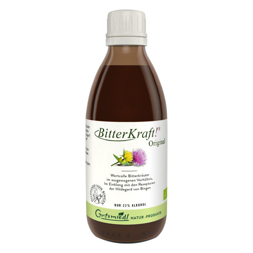 BitterKraft! Original ist eine Bitterstoff-Rezeptur, die auf dem berühmten Kräuterwissen von Hildegard von Bingen basiert.