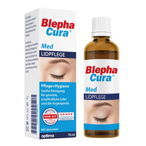 BlephaCura® Med Lid-Suspension für die sanfte, tägliche Pflege und Reinigung für gereizte, empfindliche Lider und der Augenpartie. Dermatologisch und augenärztlich getestet. Sehr gute Verträglichkeit. Spezielle Formulierung zur schonenden Entfernung von Ablagerungen, Sekreten, Verkrustungen und Schuppen.