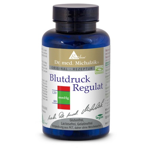 • Blutdruck Regulat nach Dr. med. Michalzik enthält OPC, Granatapfel, Arginin, Q10 und organisch gebundenes Kalium, welches zum Erhalt eines normalen Blutdrucks beiträgt. Dieser Effekt tritt ab 4 Kapseln pro Tag ein.