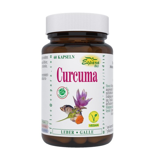 Nahrungsergänzungsmittel mit Curcuma-Pulver und Artischocken-Extrakt aus kontrolliert biologischem Anbau.