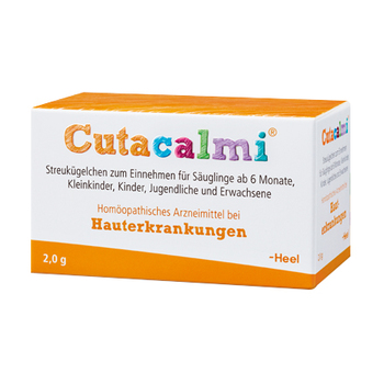 Cutacalmi® ist ein speziell entwickeltes Kinderarzneimittel, das bereits ab sechs Monaten eingesetzt werden kann. Es lindert Entzündungen sowie Juckreiz bei trockener, rissiger und schuppender Haut und unterstützt die Ausheilung von innen. Als homöopathisches Komplexmittel enthält Cutacalmi® eine Kombination ausgesuchter natürlicher Inhaltsstoffe. So hat der Inhaltsstoff Sulfur eine allgemein stabilisierende Wirkung auf chronische Entzündungen der Haut und Schleimhäute und lindert lästigen Juckreiz.