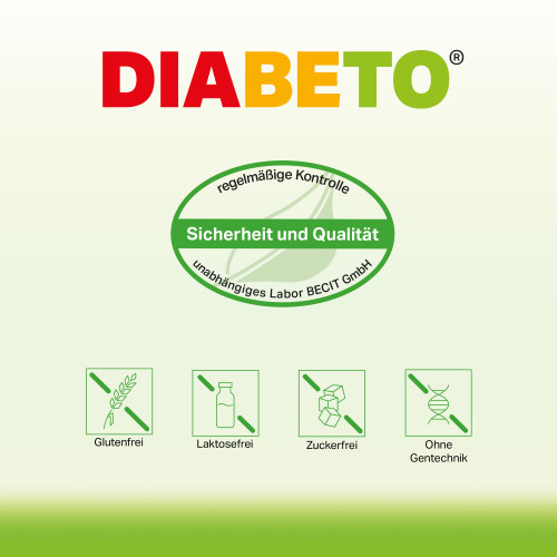 Nur unter ärztlicher Aufsicht verwenden. Ergänzende bilanzierte Diät, nicht zur ausschließlichen Ernährung geeignet. Nicht bei Fisch- oder Sojaallergie verwenden. Außerhalb der Reichweite von Kindern aufbewahren. DIABETO® ist keine Ersatz für eine abwechslungsreiche und ausgewogene Ernährung und eine gesunde Lebensweise.