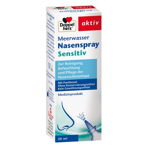 Das Doppelherz Meerwasser Nasenspray Sensitiv dient zur physikalischen Reinigung, Befeuchtung und Pflege der trockenen Nasenschleimhaut.