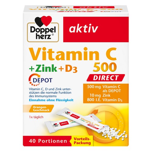 DOPPELHERZ Vitamin C 500+Zink+D3 Depot DIRECT Pel. 40 St