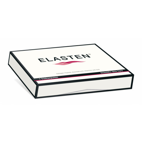 Während Hautpflege bisher meist von außen geschah und diverse Cremes und Ampullen weniger Falten versprachen, gibt es nun einen neuen Ansatz: Kollagen zur Einnahme in Trinkampullen. Mehrere Studien haben gezeigt, dass die Einnahme von Kollagenpeptiden Falten reduziert und aufbauend auf die extrazelluläre Matrix in der Haut wirkt. Zudem wird die Bildung von Fibroblasten angeregt, den Zellen, die Kollagen synthetisieren. Weitere Ergebnisse nach einer dreimonatigen Einnahme von Elasten war eine Verbesserung der Hautfeuchtigkeit und Hautelastizität sowie eine glattere Haut. Die Studienteilnehmerinnen berichten von einem verfeinerten Hautbild, das auch von Außenstehenden wahrgenommen wurde. Der Effekt war nachhaltig: Die Haut blieb auch einen Monat nach Beendigung der Einnahme von Elasten noch elastisch. Ebenso verhielt es sich mit der Hautfeuchtigkeit. Der Geschmack der Acerola-Kirsche macht die Einnahme von Elasten angenehm und erfrischend.