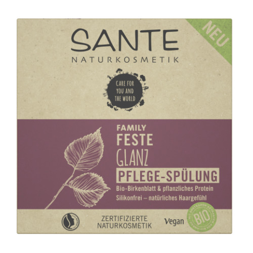 Die SANTE FAMILY Feste Glanz Spülung mit Bio-Birkenblatt für normales und glanzloses Haar spendet Glanz & Geschmeidigkeit. Die natürlich wirksame und milde Pflegeformel stärkt die Haarstruktur verbessert die Kämmbarkeit ohne das Haar zu beschweren. Mit rein natürlichem, zartem Kokosduft. Verträglichkeit dermatologisch getestet. Bio-Birkenblatt: Bekannt für seine pflegende & stärkende Wirkung für glänzendes Haar.