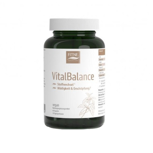 Das Produkt VitalBalance enthält Extrakte aus Salbei, Grüntee und Maca sowie Vitamin B12, Vitamin D3, Vitamin B6, Kupfer, Chrom und Zink. Zink trägt zu einem normalen Stoffwechsel von Makronährstoffen, Kohlenhydraten und Fettsäuren sowie zu einer normalen Eiweißsynthese bei, wohingegen Vitamin B6 und Vitamin B12 zu einem normalen Energiestoffwechsel beitragen.