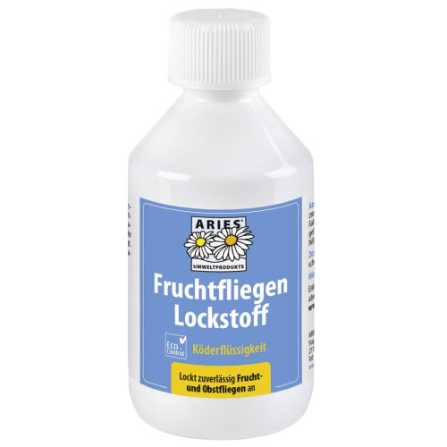 Gebrauchsfertig - u. a. zur Befüllung der original ARIES-Fruchtfliegenfalle zum Monitoring von Frucht-, Obst- und Essigfliegen. Völlig ungiftige Wirkstoffkombination aus Fruchtauszügen und organischen Säuren. Sehr gute Lockwirkung! Optimaler Erfolg wird nur im Zusammenwirken mit einem guten Fallenfabrikat erzielt; sonst besteht die Gefahr, dass ein großer Teil der kleinen Lästlinge entkommt.