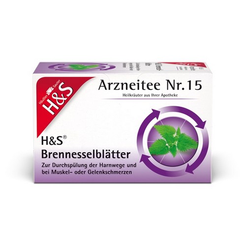 H&S Brennesselblätter. Anwendungsgebiete: Traditionell zur Durchspülung der ableitenden Harnwege, unterstützend bei leichten Harnwegsbeschwerden. Traditionell zur Linderung leichter Gelenkschmerzen. Diese Anwendungen stützen sich ausschließlich auf die langjährige Anwendung des Arzneimittels in den Anwendungsgebieten. Zu Risiken und Nebenwirkungen lesen Sie die Packungsbeilage oder fragen Sie Ihren Arzt oder Apotheker. H&S Tee-Gesellschaft mbH & Co. · Heidachstr. 62 · D-88079 Kressbronn/Bodensee.