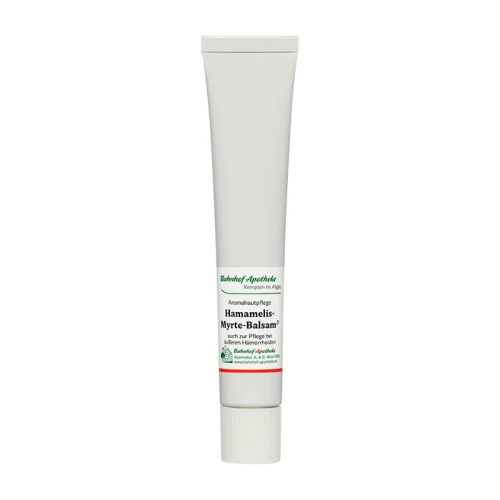 Das Hamamelis-Myrte-Balsam pflegt irritierte und gereizte Haut. Es unterstützt, gestaute Gefäße zusammenzuziehen und dadurch zu entschlacken. Auch als Pflege bei äußerlichen Hämorrhoiden, Rhagaden (Einrisse in besonders trockene Haut) sowie Schürfwunden hat sich das Balsam bewährt.