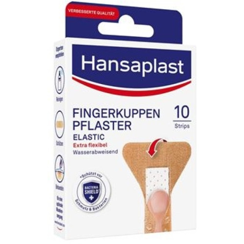 Das elastische Fingerkuppenpflaster von Hansaplast ist ein luftdurchlässiger, anschmiegsamer und zuverlässig klebender Wundschnellverband für kleine Verletzungen speziell für die Finger. Hansaplast Elastic besteht aus einem querelastischen Gewebe mit Vlieswundauflage. Hansaplast Elastic ist erhältlich als Fingerkuppenpflaster, Fingerstrips sowie als Latexfreie zuschneidbare Meterware.