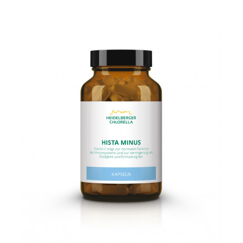 Die Inhaltsstoffe der Hista Minus Kapseln sind am körpereigenen Abbau von Histamin beteiligt. Zum einen fungiert Vitamin C als Cofaktor für die Diaminoxidase, ein Enzym, das für den Abbau von Histamin notwendig ist, zum anderen ist die Aminosäure Methionin am Abbau des Botenstoffs beteiligt. Abgerundet wird die Rezeptur durch Quercetin und hochwertiges Vitamin B12 als Methylcobalamin, einem Cofaktor für die Bildung von aktivem Methionin und Histamin abbauenden Enzymen.