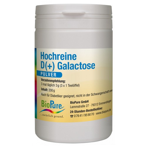 3x täglich einen Teelöffel in Wasser oder wahlweise auch 2x täglich anderthalb Teelöffel, mindestens 1,5 Stunden vor oder nach den Mahlzeiten einnehmen (Die Galactose kann über einen langen Zeitraum eingenommen werden. Die Einnahme sollte jedoch mindestens 8 Wochen erfolgen).