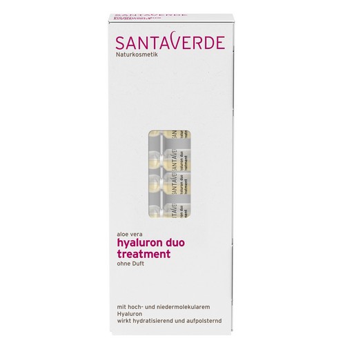 Das Wirkstoffkonzentrat mit Duo Hyaluron Komplex bietet eine hochwirksame Feuchtigkeitsversorgung bis in die tiefen Hautschichten. Reiner Aloe Vera Saft spendet nährstoffreiche Feuchtigkeit und wirkt regenerierend. Hochmolekulares Hyaluron hydratisiert die oberste Hautschicht, während niedermolekulares Hyaluron tief in die Haut eindringt, ihre Feuchtigkeitsdepots auffüllt und aufpolsternd wirkt. Rosenblütenhydrolat und Lavendelblütenextrakt wirken beruhigend und lindern Rötungen. Die ölfreie Textur hinterlässt die Haut spürbar erfrischt, durchfeuchtet und geglättet. Besonders geeignet für feuchtigkeitsarme und sensible Haut.