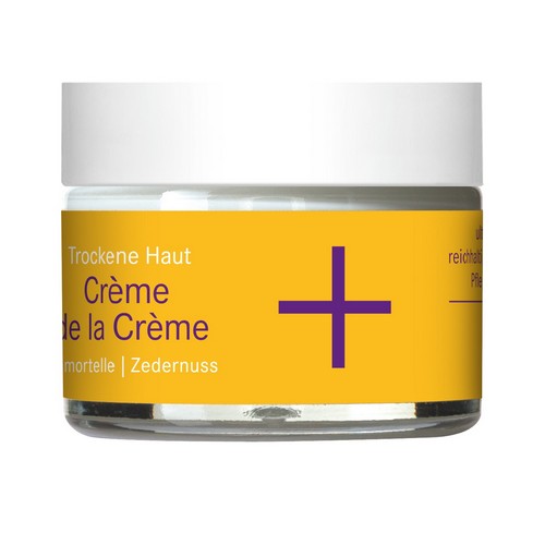 Immortelle, Zedernuss und Hyaluron Immortelleöl ist bekannt für seine straffende, beruhigende Wirkung und selbst bei spröder Haut sehr gut verträglich. Während nährendes Zedernussöl sie regeneriert, macht reizlinderndes Mandelöl pflegebedürftige Haut streichelzart. Die Feuchtigkeitsbalance besonders trockener Haut unterstützt Avocadoöl aus fairem Handel. Zugleich spendet pflanzliches Hyaluron zusammen mit Fair Trade Aloe Vera intensive Feuchtigkeit und beugt Trockenheitsfältchen vor. Der warm-würzige Duft der Immortelle erinnert an entspannte Tage am Mittelmeer. Die erlesene Crème de la Crème erfüllt die hohen Ansprüche besonders trockener Haut mit Bravour. Der Teint wirkt glatt – voller Ausstrahlung und Energie.