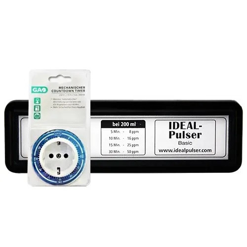Zusätze zum Wasser, um die Elektrolyse anzustoßen, dürfen nicht verwendet werden. Der IDEAL-Pulser Komfort hat die gleichen Produkteigenschaften wie der IDEAL-Pulser Basic , jedoch mit einer integrierten elektronischen Zeitschaltuhr. Hiermit ist es möglich unterschiedlichste Konzentrationen in Abhängigkeit der eingesetzten Wassermenge eine gleichbleibende Qualität zu erzeugen, ohne ständig auf die Zeit zu achten. Das Gerät schaltet automatisch nach Ablauf der eingestellten Zeit ab. Nutzen Sie die Zeit entspannt für andere Tätigkeiten.