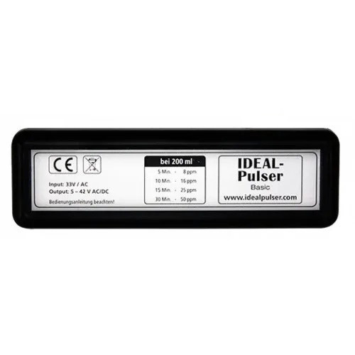 Zusätze zum Wasser, um die Elektrolyse anzustoßen, dürfen nicht verwendet werden. Der IDEAL-Pulser Komfort hat die gleichen Produkteigenschaften wie der IDEAL-Pulser Basic , jedoch mit einer integrierten elektronischen Zeitschaltuhr. Hiermit ist es möglich unterschiedlichste Konzentrationen in Abhängigkeit der eingesetzten Wassermenge eine gleichbleibende Qualität zu erzeugen, ohne ständig auf die Zeit zu achten. Das Gerät schaltet automatisch nach Ablauf der eingestellten Zeit ab. Nutzen Sie die Zeit entspannt für andere Tätigkeiten.