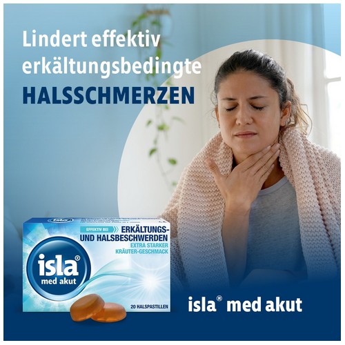 Isla® med akut kann bei übermäßigem Gebrauch abführend wirken und / oder Magenbeschwerden hervorrufen. In vereinzelten Fällen können Überempfindlichkeitsreaktionen auftreten. Das Verfalldatum ist auf der Faltschachtel und dem Blister aufgedruckt. Verwenden Sie diese Packung nicht mehr nach diesem Datum. Die Pastillen sind trocken und nicht über 25°C zu lagern. Es empfiehlt sich, die Pastillen im Umkarton aufzubewahren, um den Inhalt vor Licht zu schützen. Pastillen Lufteinschlüsse enthalten. Vereinzelt können Spuren an der Folie haften. Dies und geringfügige Abweichungen in Bezug auf Farbe, Geschmack und Konsistenz, die durch natürliche Inhaltsstoffe bedingt sind, haben keinen Einfluss auf die Qualität des Produktes. Für Kinder unzugänglich aufbewahren!