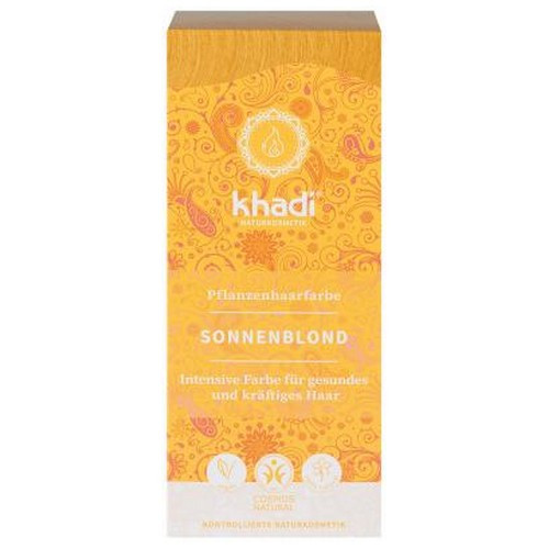 khadi Pflanzenhaarfarbe Sonnenblond färbt das Haare in einem kraftvollen, warmen Blond. Das Ergebnis hängt von der Ausgangsfarbe ab: Mit hellem Haar erhältst man ein glanzvolles Honigblond bis zu einem kräftigem, sommerlichen Sonnenblond. Dunkles Haar erhält goldene bis zart rötlich-goldene Reflexe und einen besonders schönen Glanz. khadi Sonnenblond deckt auch die grauen Haare ab – besonders pflegend und in einem warmen, sonnig strahlenden Blond. Achtung: khadi Sonnenblond hat keine aufhellende Wirkung, sondern baut sich nur auf die Ausgangshaarfarbe auf.