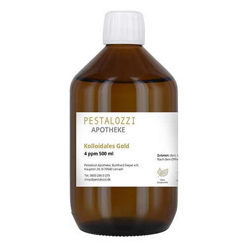 1 x 500 ml "Kolloidales Gold - Pestalozzi Apotheke" in lichthemmender Apothekerbraunglasflasche