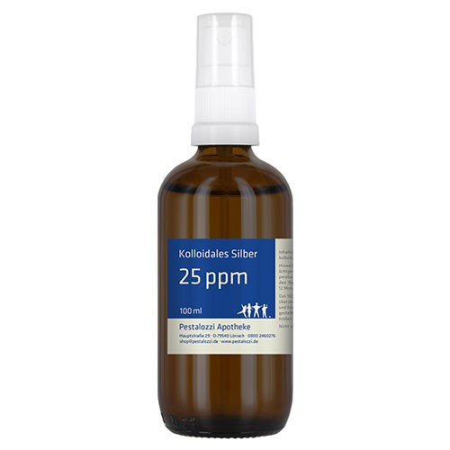 Das kolloidale Silber 25 ppm wird mit hochreinem destillierten Wasser unter qualifizierten Laborbedingungen frisch hergestellt und in einer dunklen Glasflasche geliefert. Die Herstellung erfolgt in der Apotheke unter überwachten Laborbedingungen. Das kolloidale Silber wird auf elektrolytischem Wege mit Hilfe eines entsprechenden Generators hergestellt. Dabei werden aus 99,99% reinem Silber kleinste Partikel gebildet und in destilliertem Wasser verteilt. Wir arbeiten dabei ohne Einsatz von Zusatzstoffen. Bitte beachten Sie: Kolloidales Silber ist kein Arzneimittel und daher auch ohne Angabe einer Indikation. Aus rechtlichen Gründen bieten wir daher das kolloidale Silber nur für technische Zwecke an. Nicht zum Einnehmen.