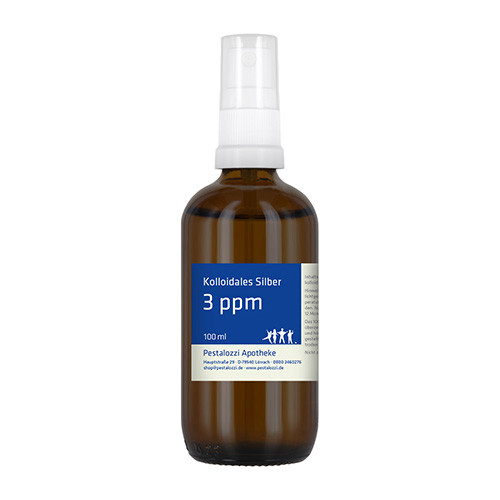 Das kolloidale Silber 3 ppm wird mit hochreinem destillierten Wasser unter qualifizierten Laborbedingungen frisch hergestellt und in einer dunklen Glasflasche geliefert. Die Herstellung erfolgt in der Apotheke unter überwachten Laborbedingungen. Das kolloidale Silber wird auf elektrolytischem Wege mit Hilfe eines entsprechenden Generators hergestellt. Dabei werden aus 99,99% reinem Silber kleinste Partikel gebildet und in destilliertem Wasser verteilt. Wir arbeiten dabei ohne Einsatz von Zusatzstoffen. Bitte beachten Sie: Kolloidales Silber ist kein Arzneimittel und daher auch ohne Angabe einer Indikation. Aus rechtlichen Gründen bieten wir daher das kolloidale Silber nur für technische Zwecke an. Nicht zum Einnehmen.