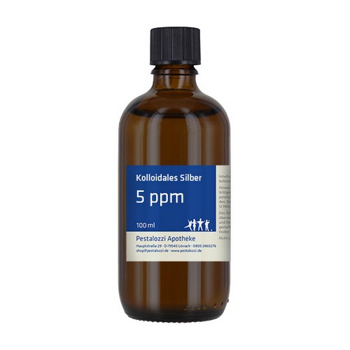 Das kolloidale Silber 5 ppm wird mit hochreinem destillierten Wasser unter qualifizierten Laborbedingungen frisch hergestellt und in einer dunklen Glasflasche geliefert. Die Herstellung erfolgt in der Apotheke unter überwachten Laborbedingungen. Das kolloidale Silber wird auf elektrolytischem Wege mit Hilfe eines entsprechenden Generators hergestellt. Dabei werden aus 99,99% reinem Silber kleinste Partikel gebildet und in destilliertem Wasser verteilt. Wir arbeiten dabei ohne Einsatz von Zusatzstoffen. Bitte beachten Sie: Kolloidales Silber ist kein Arzneimittel und daher auch ohne Angabe einer Indikation. Aus rechtlichen Gründen bieten wir daher das kolloidale Silber nur für technische Zwecke an. Nicht zum Einnehmen.