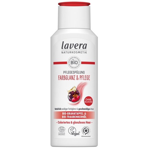 Erlebe das lavera Gefühl wirksamer Haarpflege aus der Natur: Unsere sorgfältig ausbalancierte Rezeptur mit Bio-Granatapfel und Bio-Traubenkernöl ist speziell auf die Bedürfnisse colorierter und glanzloser Haare abgestimmt und verleiht ihnen natürlichen Farbglanz und Pflege
