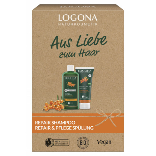Aktion Geschenkset LOGONA Repair Haarpflege mit Bio-Sanddornöl.