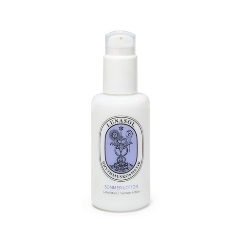 Die Lotion versorgt die sonnenexponierte und sonnengestresste Haut. Sie bereitet auf die Sonne vor, wirkt sonnenbedingten Abbauprozessen entgegen und harmonisiert die sonnengestresste Haut. Die Lotion kühlt und entspannt, macht die Haut geschmeidig, glatt und elastisch und lässt sonnenbedingten Juckreiz schwindet. Ihre Pflege beruht auf unseren spagyrischen Inhaltsstoffen: Essenz „Formel-Sommer“ mit Aloe vera, Faulbaumrinde und Stiefmütterchen sowie Weizenkeimölauszüge aus Ringelblumenblüten und Karotten, ergänzt mit Karottensamenöl. Karotten und weitere Pflegeöle verleihen der Lotion eine leichte Gelbfärbung und einen würzig-warmen Duft.