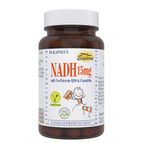 Nahrungsergänzungsmittel mit hochdosiertem NADH, Vitamin C, Q10 und Carnitin. Die pflanzliche Kapselhülle BioVXR® Capssorgt für eine verzögerte Freisetzung und schützt so das NADH vor der Magensäure