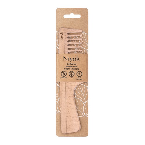 Der plastikfreie Griffkamm von Niyok aus Buchenholz eignet sich hervorragend für alle Haartypen und -längen.