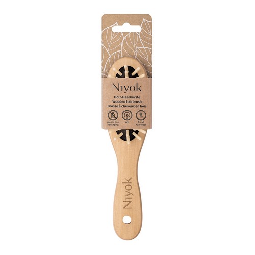 Die Niyok Holz-Haarbürste ist mit ihren Holzborsten perfekt für alle Haartypen und die tägliche Anwendung geeignet.