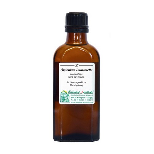 2 Esslöffel der Aromamischung im vorderen Teil des Mundes wie ein Bonbon lutschen und durch die Zähne ziehen. Nach ca. 10 Minuten wird das stark aufemulgierte Öl ausgespuckt. Danach den Mund gründlich ausspülen und die Zähne putzen.