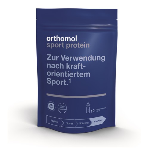 Das Pulver mit Schokoladen-Geschmack dient als Regenerator nach kraftorientierten Einheiten. Denn insbesondere nach dem Sport dienen Proteine als wichtige Bausubstanz der Muskulatur. Orthomol Sport protein enthält hochwertiges Molkenproteinisolat einschließlich der wichtigen BCAAs (verzweigtkettige Aminosäuren), Kreatin, L-Glutamin und hochwertigen Ballaststoffen aus Flohsamenschalen sowie Inulin.