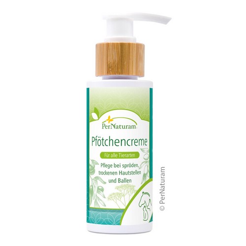 Pflegende Kräuterauszüge aus Schafgarbe, Limone, Olive, Beinwell, Gewürznelke, Ringelblume und Thymian sorgen für geschmeidige Ballen. Die Creme zieht vollständig ein, wird nicht abgeleckt und hinterlässt keine Fettflecken. Im Winter pflegt sie die durch Salz rissig gewordenen Pfoten und verhindert Wundlecken.