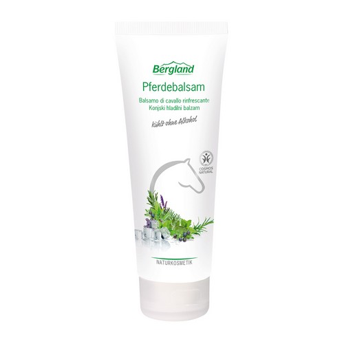 Bergland Pferdebalsam ist ein kühlendes und vitalisierendes Gel zur Pflege der beanspruchten Muskulatur. Rosmarin und ein Extrakt aus der Rosskastanie fördern die Hautdurchblutung. Natürlicher Kampfer und Menthol wirken kühlend und erfrischend. Die etherischen Öle aus Fichtennadel, Minze und Cajeput sind wohltuend und wirken belebend. Aloe Vera versorgt die Haut mit Feuchtigkeit.