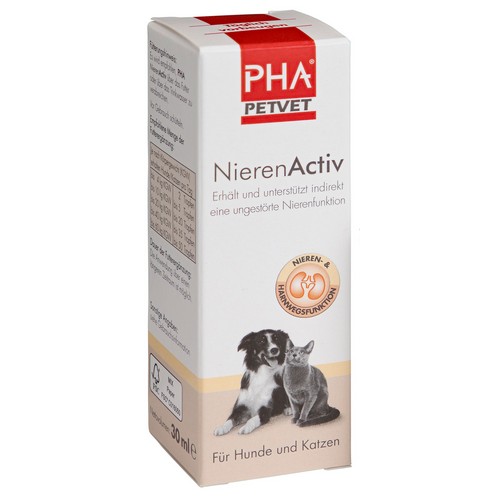Erhält und unterstützt indirekt eine ungestörte Nierenfunktion. Hunde und Katzen (besonders ältere Tiere) trinken häufig zu wenig. Dadurch verringert sich die Ausscheidung bestimmter Stoffwechselprodukte. In Folge können Nierenschäden entstehen. PHA NierenAktiv enthält pflanzliche Wirkstoffe, wie Birkenblätter, Schachtelhalmkraut und Wacholderbeeren. Diese fördern indirekt die Trinkwasseraufnahme bei Katzen und Hunden.