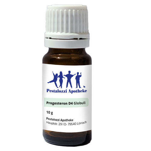 Bei diesem apothekenpflichtigen Rezepturarzneimittel handelt es sich um Globuli mit dem Hormon Progesteron in der homöopathischen Potenz D4. Die Globuli werden nach Ihrer Bestellung im Labor der Pestalozzi Apotheke für Sie in traditioneller Handpotenzierung hergestellt.