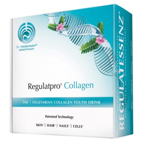 Nach jahrelanger Forschung und Entwicklung ist es Dr. Niedermaier® Pharma gelungen, das begehrte Kollagen in vegetarischer Form in einen neuen Drink zu integrieren. Regulatpro® Collagen ist ein flüssiges Nahrungsergänzungsmittel mit fermentierter Regulatessenz® sowie Kollagen aus der Eierschalenmembran, veganer Hyaluronsäure und speziell ausgewählten Vitaminen und Mineralstoffen.