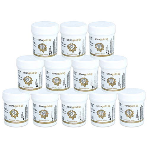 Alle 12 Schüssler Salze Basismittel im Set zum günstigen Sparpreis von 6.40€ pro 400 Tabletten.