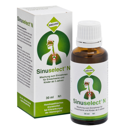 Sinuselect N ist ein gut verträgliches natürliches Arzneimittel zur Behandlung von akuten und chronischen Entzündungen der Nasenhöhle und Nasennebenhöhlen (Sinusitis). Die Sinusitis kann aus einem einfachen Schnupfen entstehen und von Schwindel, Übelkeit und Dauerkopfschmerz (Stirnhöhlenkatarrh) begleitet sein. Sinuselect N beseitigt die Schleimhautschwellung, die verschleimten Nebenhöhlen werden entleert, der überflüssige Schleim wird hinausbefördert, ohne die normale Schleimproduktion negativ zu beeinflussen. Auch die Entzündungen der Nebenhöhlen klingen rasch ab. Ein entzündungshemmender Effekt mindert das Risiko einer Neuerkrankung.