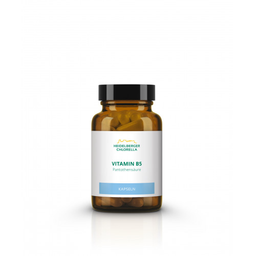 Vitamin B5 ist ein Bestandteil des Coenzyms A, welches grundlegende Funktionen im Körper erfüllt. Dazu gehören unter anderem die Bildung von Acetylcholin, einem der wichtigsten Neurotransmitter unseres Nervensystems sowie der Ab- und Aufbau von Fettsäuren, Kohlenhydraten und Cholesterin. Letzteres wird wiederum für die Bildung von Steroidhormonen benötigt. Zusätzlich spielt das Coenzym A eine Rolle bei der Umwandlung und Funktionalisierung von Proteinen, Grundvoraussetzungen für die Genaktivierung, die Regulation von Membranrezeptoren und weiteren Zellfunktionen. Die Vitamin B5 Kapseln enthalten veganes und hochdosiertes Vitamin B5 als Calcium D-Pantothenat.